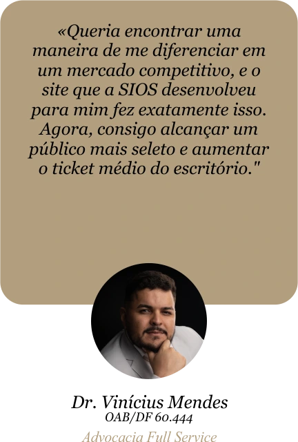 Nós do SIOS criamos e desenvolvemos site para advogados: advogados iniciante, advogado autônomo e escritórios de advocacia. Totalmente personalizados de acordo com a identidade visual, perfil e objetivo do negócio.